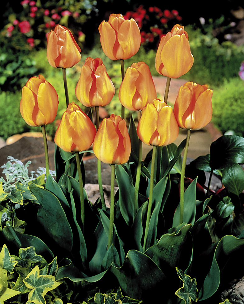 leuchtend gelborange, IV-IV, 55 cm, Blatt grün, sonnig, mittel, horstig, Pflanzabstand 15 cm